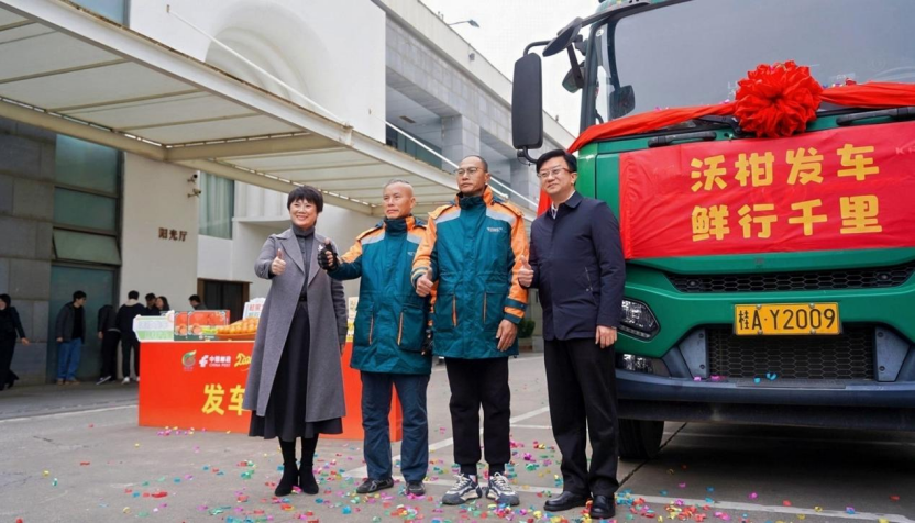 启动仪式结束后,“桂果出桂”发车仪式现场发车,首批25吨沃柑在广西邮政的助力下正式发往宁夏。
