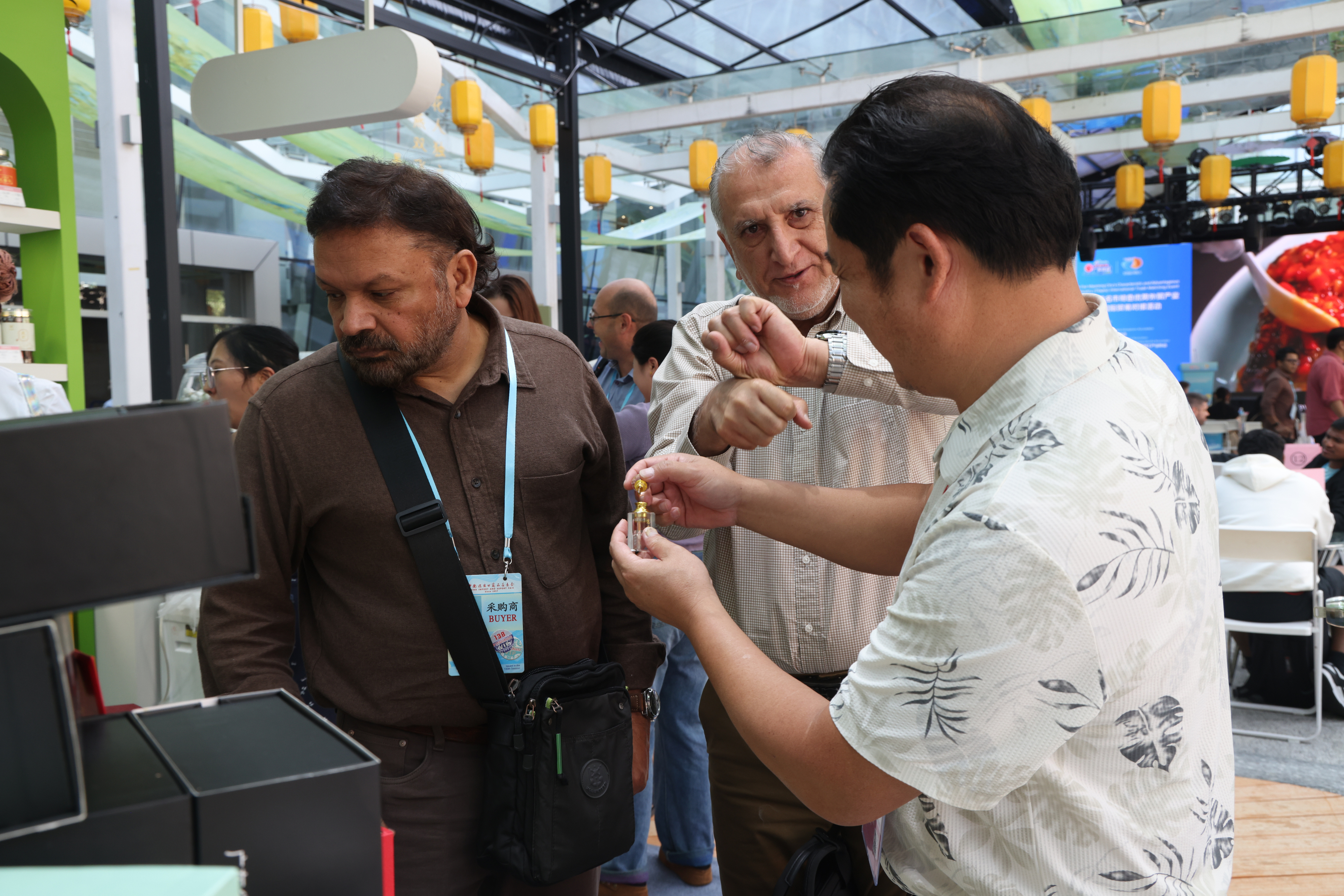 在展区里,沉香、竹蒸笼、大灵芝等岭南特产颇受关注,采购商来往不断。被称为“木中黄金”的沉香格外受欢迎,惠州市鸿茂林业带来的线香、车载熏香器吸引了不少客户。“沉香既有生态价值,又有药用功效,巴基斯坦客商很看好。”企业董事长钟锦祥说,这种广东“木头”在阿拉伯市场卖得不错。